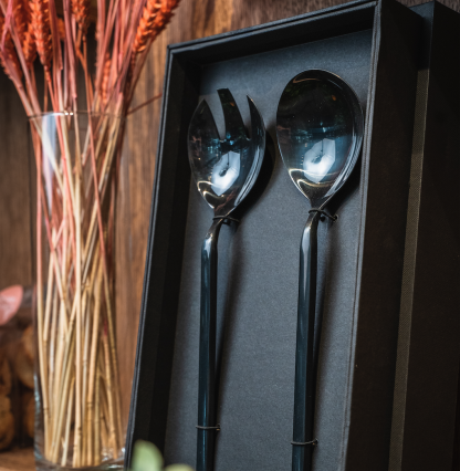 Vår Gårds egna salladsbestick. Framtagna av kända skulptören Vera Vernsson från Saltsjöbaden.